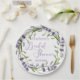 Bridal Shower Paper Plate. This design features a watercolor illustration of Purple lavender flowers. Personalise with your name and date.