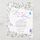 This invitation is a work of art that captures the delicate dance of the natural beauty of flowers and the ephemeral grace of butterflies. The invitation promises an event filled with the delicate scent of flowers, the charm of butterflies and the overwhelming joy that accompanies the journey to marriage. Like the intricate patterns of a butterfly's flight, this invitation invites all to celebrate love, transformation and the gentle beauty that defines a union blooming like lavender in a serene garden. Personalise the invitation by entering your details, and if you want to further change the style and placement of the text, click the "Click to customise further" button. See full collection here: https://www.zazzle.com/collections/trendy_elegant_flower_lavender_collection-119835281918261692