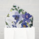 Tissue paper depicts an elegant floral watercolor design with simple purple, lavender and white orchids and greenery._