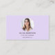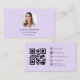 Connect in style with this purple lavender photo business card, featuring a scannable QR code that links directly to your social media, website, or booking page. The calming lavender colour palette gives the card a modern yet approachable look, while the customisable profile photo makes it personal and memorable. Perfect for influencers, entrepreneurs, small business owners, and content creators who want to stand out with a fresh and trendy design.