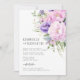 Elegant and delicate watercolor floral peonies design Wedding Invitation with RSVP QR code in the back (with website). Soft pastel purple, lavender, light lilac, violet, blush pink botanical watercolor colours and wash. Any time of year..perfect for spring summer wedding season. Easy templates to edit. See matching collection 'KIMBERLY'