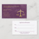 Purple Lawyer Scales of Justice Law Firm Appointment Business Cards. Professional, elegant legal law company business cards. Feature a golden logo (flat print not foil), firm and personal details, appointment card on the back. Background colour is easily customised. Perfect attorney at law business cards. Designed by http://www.superdazzle.com Appointment