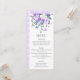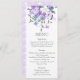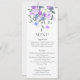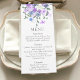 Purple and light blue rose dinner menu for a purple springtime wedding reception. Table place card is versatile for a French lavender or lilac wedding theme. Purple and blue rose bouquet is a beautiful botanical look for an outdoor garden wedding.