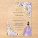 Purple Lilac Floral Princess Gold Quinceanera 15 Acrylic Invitations