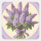 Illustration of purple lilac flowers tied with ribbon stickers.