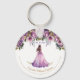 Customise and personalise your own Quinceañera keychain on this lilac, purple, pink, and gold colour template.