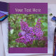 Type the text you want in the Personalised section, such as your name or the name of an event or organisation. This notebook has a lilac image against a purple background, with a green spiral binding on the front and back. Choose the type of paper you want, including different types of lined patterns or blank. Use it as a guest book or a place to capture your ideas, doodles, or big plans.