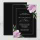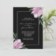 Invite guests to your wedding with an elegant watercolor design featuring purple and white magnolia blossoms and leaves on a black background. MATCHING ITEMS in our collection.