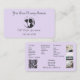 Professional business card designed for maid and house cleaning services using a polished purple color palette. The layout includes a QR code to share online information while keeping the design clean and easy to read. Suitable for cleaning companies, independent cleaners, and housekeeping services. Fully customizable text and QR destination with a print-ready layout.