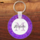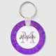 Purple Mandala Bird Feathers Monogram Key Ring