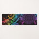 This bold yoga mat has a rainbow bright coloured smoke with a purple mandala