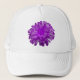 This pretty hat features a photograph of a marigold flower that has been manipulated to create a beautiful flower with stunning purple petals. The design is shown on a white hat but is also available on other colours of hats.