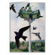 Purple martins congregate around their communal birdhouse up high on a pole in this vintage illustration from a 1922 natural history book.