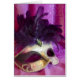Greeting Card with a photo of a purple masquerade mask with feathers and glitter.