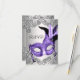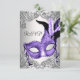 Beautiful purple feather mask silver and red masquerade party RSVP. This elegant purple masquerade party RSVP is easily customised for your event by adding your details in the font style and wording of your choice.