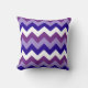A stylish Throw Pillow or Cushion, with a diagonal zigzag pattern of Midnight Blue, Mauve, Lavender and White diagonal chevrons on one side; for added flexibility the chevrons are larger scale and horizontal on the other side of the pillow. Part of the Posh & Painterly 'Purple Pop' collection.