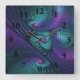 Purple meets Turquoise modern abstract Fractal Art Square Wall Clock