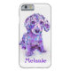 A merle dachshund puppy dog in shades of blue and purple is featured on this personalizable iphone case. Leave it plain or add a name in your choice of font colour and style.