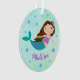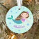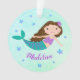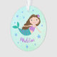 This cute personalised mermaid ornament features a whimsical mermaid and starfish design on a watercolor aqua background. The design is the same on the back. Personalise the script text with a name.