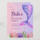 Make a splash with this stunning purple mermaid themed birthday invitation! Perfect for an underwater adventure or a magical mermaid party, this invitation features a beautiful mermaid design, complete with shimmering scales and a sparkling tail. With its vibrant colours and playful design, this invitation will transport your guests to a whimsical underwater world full of fun and excitement.