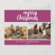 Purple Merry Christmas Family 2 Photo Holiday Postcard. Add 2 photos and text, and make a trendy and chic personalised family Christmas card.