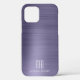Purple Metal Monogram iPhone 12 Case. Fully personalise this elegant purple brushed metallic iPhone 12 case with you monogram and name.