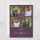 Purple & Fake Gold Minimal Initials Simple Fancy 4 Multi Photos Collage Wedding Invitation with Envelope.