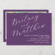 Purple minimalist photo wedding invitation with simple elegant calligraphy script for bride and groom's names.