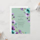 This design features a soft mint green background adorned with vibrant purple and teal watercolor anemones. The painterly style creates a whimsical and romantic mood, perfect for a fresh spring or summer event. Delicate wildflower buds and lush green leaves accent the composition with an airy, artistic touch.