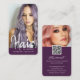 Purple Modern chic Hair Stylish QR code photo Business Card