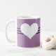Sweet and charming Modern Heart Mug featuring a lavender background and a cute heart and striped border. This cute and girly mug is perfect for enjoying your favourite hot beverage! Customise with the text of your choosing. Click on "Customise" to find additional personalisation options.
