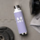 Create Your Own Personalised Lilac Purple Name Monogram Water Bottle. This cute and stylish water bottle features a soft lilac purple background for a fresh and calming look. A bold white initial sits in the centre, overlaid by a flowing black script name for a personalised touch on both sides. Ideal for students, teachers, gym-goers, and fitness enthusiasts, it’s perfect for school, the gym, workouts, or staying hydrated throughout the day. This unique water bottle makes a thoughtful gift for birthdays, holidays, or any occasion where style meets practicality. Whether for class, work, or everyday use, it’s a chic and personal way to hydrate in style.