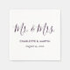 Minimalist purple Mr. and Mrs. wedding paper napkins with a modern script font.