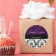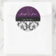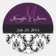 Purple Monogram Damask for Weddings Stickers. Art and design by Elke Clarke©2010. More designs at whitewhimsocalweddings.com and whitewhimsicalweddings.blogspot.com. Customise with your personal information and wedding colours.