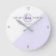 Modern professional simple customizable business wall clock with editable purple monogram style logo. Great for anyone in the beauty or fashion industry. Great for freelance makeup artists, cosmetologist, estheticians, aestheticians, fashion stylists and more. Check out our fully matching other products. If you have a custom request - please send us a message or email: zazzle@cannydesign.com