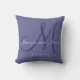 Personalised purple tone on tone monogrammed pillow with last name initial, bride and groom first names and wedding date in script font typography overlay printed on a solid colour background. Elke Clarke© for MonogramGallery at Zazzle. Makes a great gift for newly weds or the wedding couple. Great for your bedroom, favourite chair, as fun decor in your family room or formal decorative addition to your living room as a wedding keepsake.