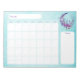 This undated calendar notepad design features a purple floral crescent moon on an aqua speckled background. It contains enough pages to last for 40 months! All of the fonts, colors, and images may be changed. Please note that the small squares intended for writing the numbers in have been grouped together, so you'll just need to ungroup them to make any changes.
