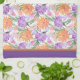 A Colourful Kitchen Dish Towel Patterned In Orange And Purple Flowers