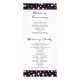 Purple mountains and conifer trees ceremony and party wedding program . An elegant wedding design featuring a mountain range through conifers and your names in handwritten style. The back includes dark and white borders with white polka dots on top and at the bottom of the card.