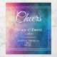 A gorgeous pink, purple and blue galaxy with simple white line frame to set off your text.