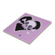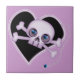 Cute purple skull and crossbones is set upon a black heart with a purple neon outline and pull chain.