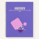 A purple notebook with a simple floral design of yellow geometric flowers for school girls.