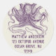 These round return address labels have a nautical design. They feature a vintage engraving style illustration of an octopus in purple and your own personalised message.