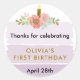 A watercolor ombre cake with gold accents is featured on this trendy first birthday favour sticker. Use the template form to add your details. The 'Customise' feature can be used to change the font style.