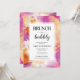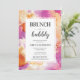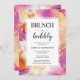 Trendy and modern Brunch and Bubbly bridal shower brunch and bubbly invitation featuring purple, orang and gold alcohol ink pattern and matching back page.