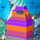 Vibrantly colourful purple, orange and pink stripes favour box. Match it with additional accessories and gift packaging.
