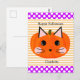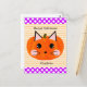 A personalised Happy Halloween pumpkin cat postcard, which you can easily personalise with her name if wanted. Please delete sample text if no text is wanted. This orange and purple kid's Halloween postcard is purr-fect for cat lovers.