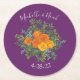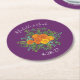 Purple Orange Rose Wedding Spring Round Paper Coaster
