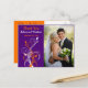 This white, orange and purple floral thank you wedding photo post card has a template area for you to upload your digital photo to. It matches the wedding invitation shown below. If you require any other matching items in this design, please email your request to niteowlstudio@gmail.com.