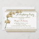 Pretty orchid birthday party invitation accented with stripes. Use the classic wording or change to suit your style.